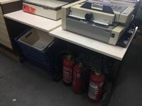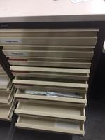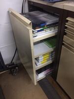 - verschiedene Arbeitstische/Schränke mit Fächern bzw. Schubladen multiple worktables/cabinets with compartments or drawers