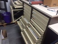 verschiedene Arbeitstische/Schränke mit Fächern bzw. Schubladen multiple worktables/cabinets with compartments or drawers